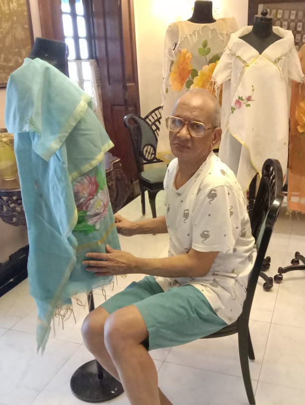 In keeping with the vision to collaborate and promote sustainable fabrics and art, and moving away from the traditional model; where designer and artisan were employed as silent contributors - to create a unique collection of prêt with hand painted works of Ms Shukla.